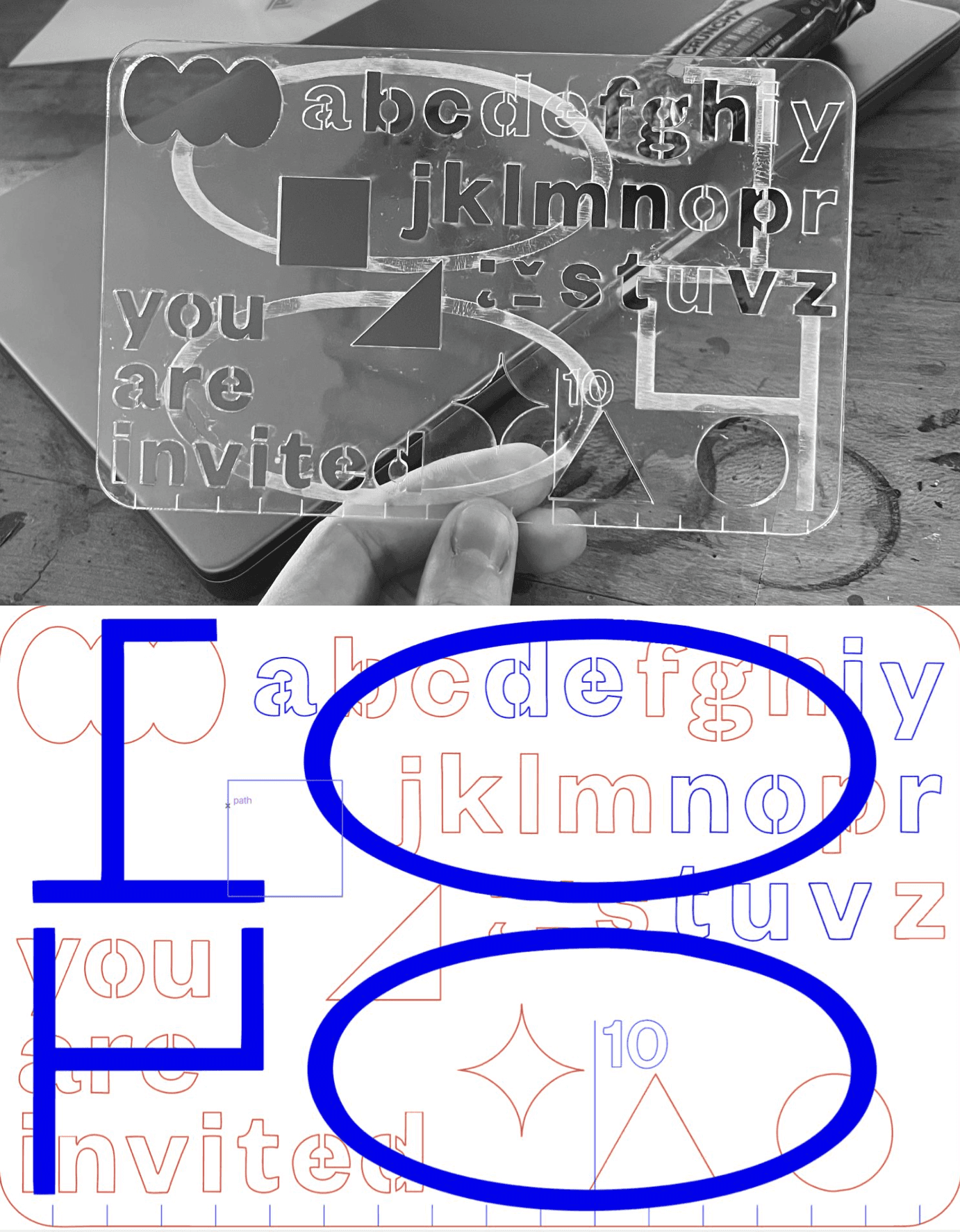 a stencil as both a design object and the invitation to the undertaking, themed disposable cameras and packaging designs.